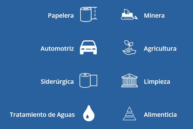 En procesos industriales como celulosa y papel, acero, azúcar, petroquímica, automotriz, emulsiones de maquinado, etc. - Tratamiento de efluentes industriales: